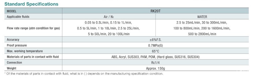 · 유량 범위 : Gas Air/N₂0.5~100L/min Liquid WATER 25~2800mL/min